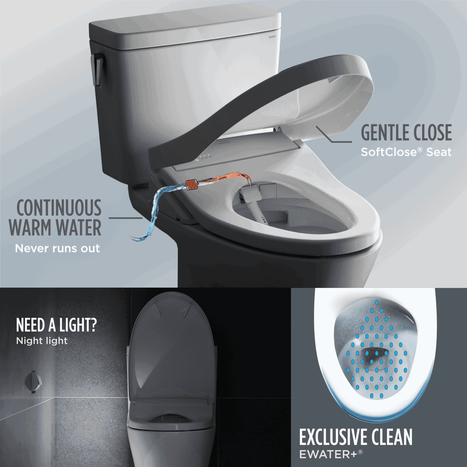 WASHLET+® hides hoses & cords for a tidy look.
