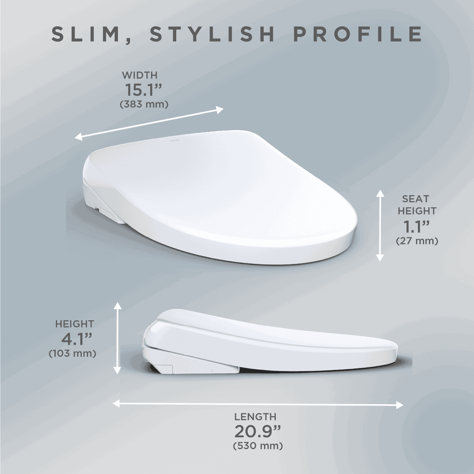 Compact, spa-like comfort for smaller bathrooms and powder rooms. Continuous warm water, PREMIST® and EWATER+® self-cleaning, heated seat, warm-air dryer, and hands-free lid with 4-profile remote.